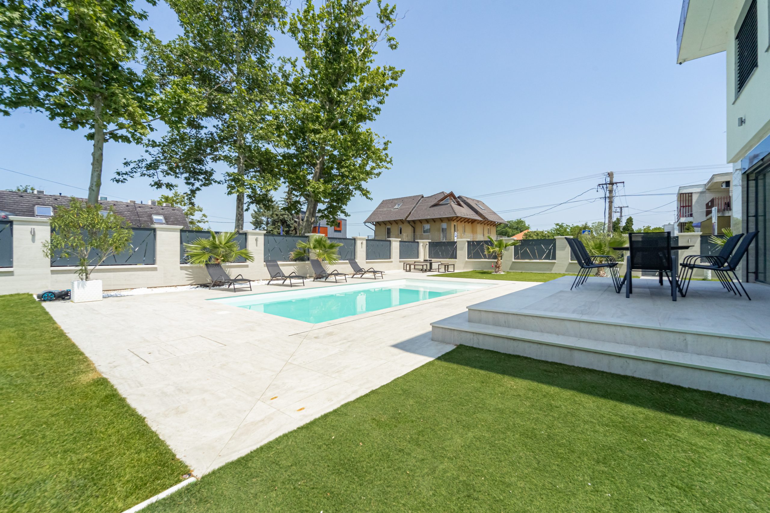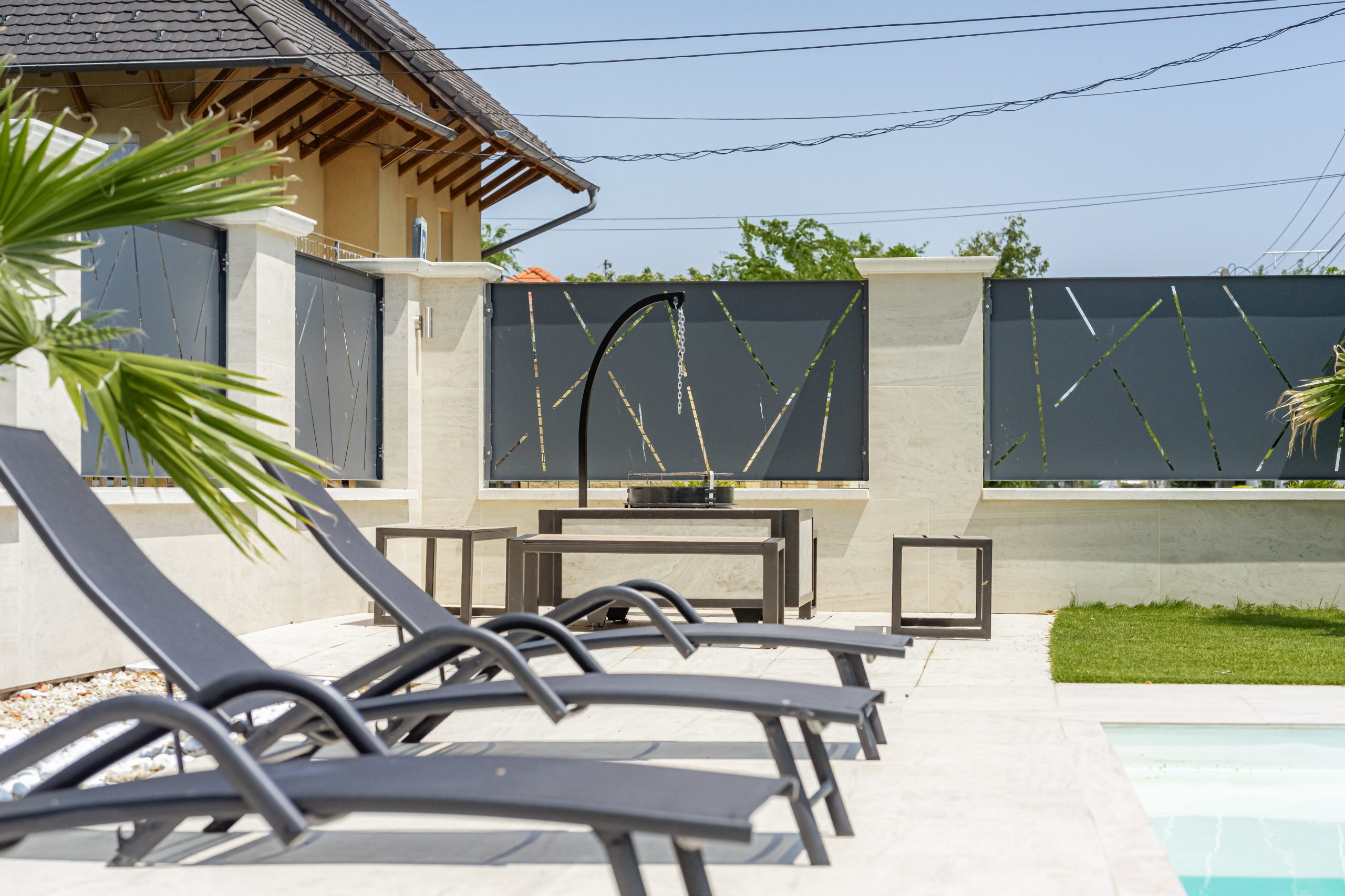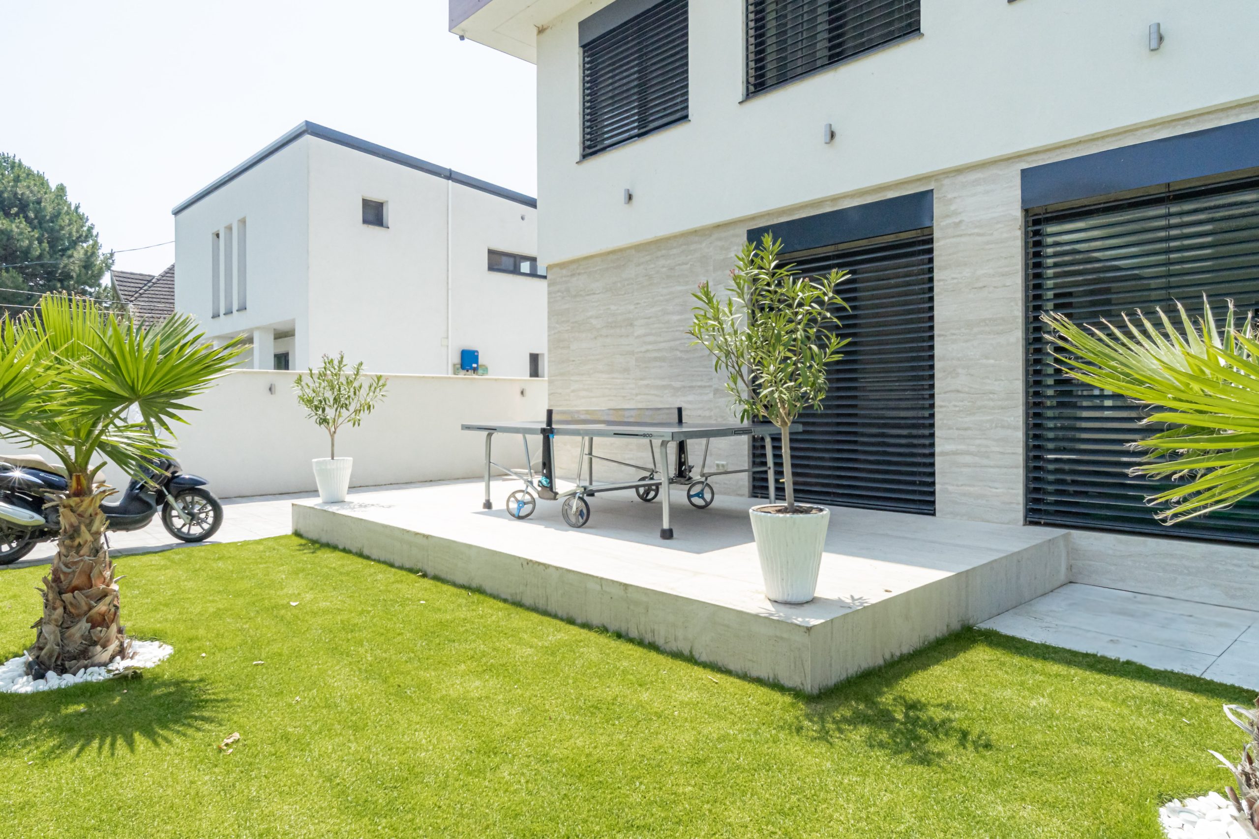 Amaizing! Every detail was carefully designed; modern, stylish, and spacious. A beautiful garden, waterfront location with excellent positioning, and a stunning panorama from the rooftop terrace. There is also a heated saltwater pool and a jacuzzi. The barbecu corner is professional. Perfect place for children. Everything was in place for a perfect vacation. We will definitely return.
