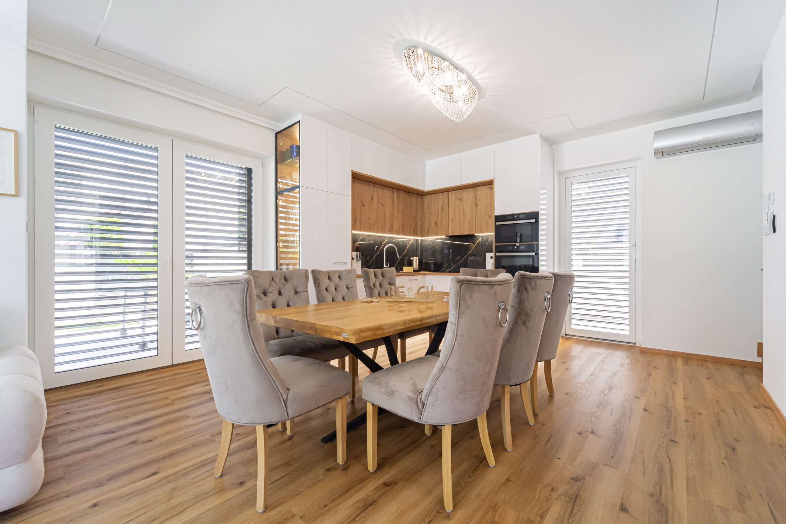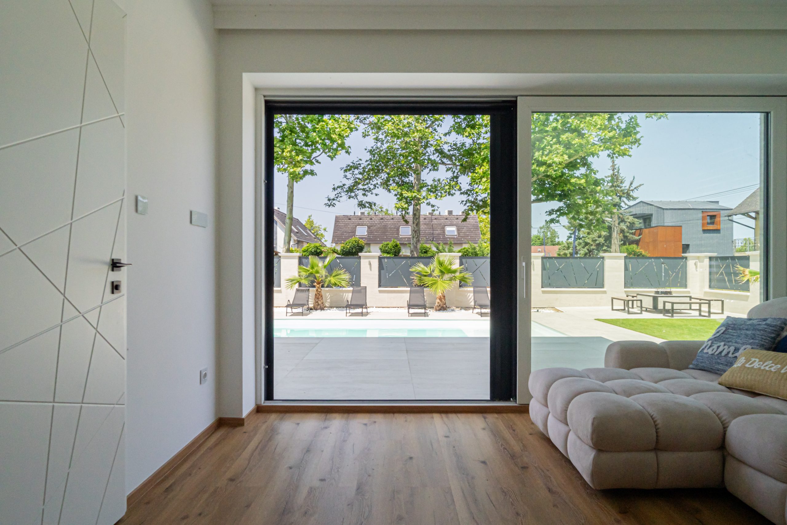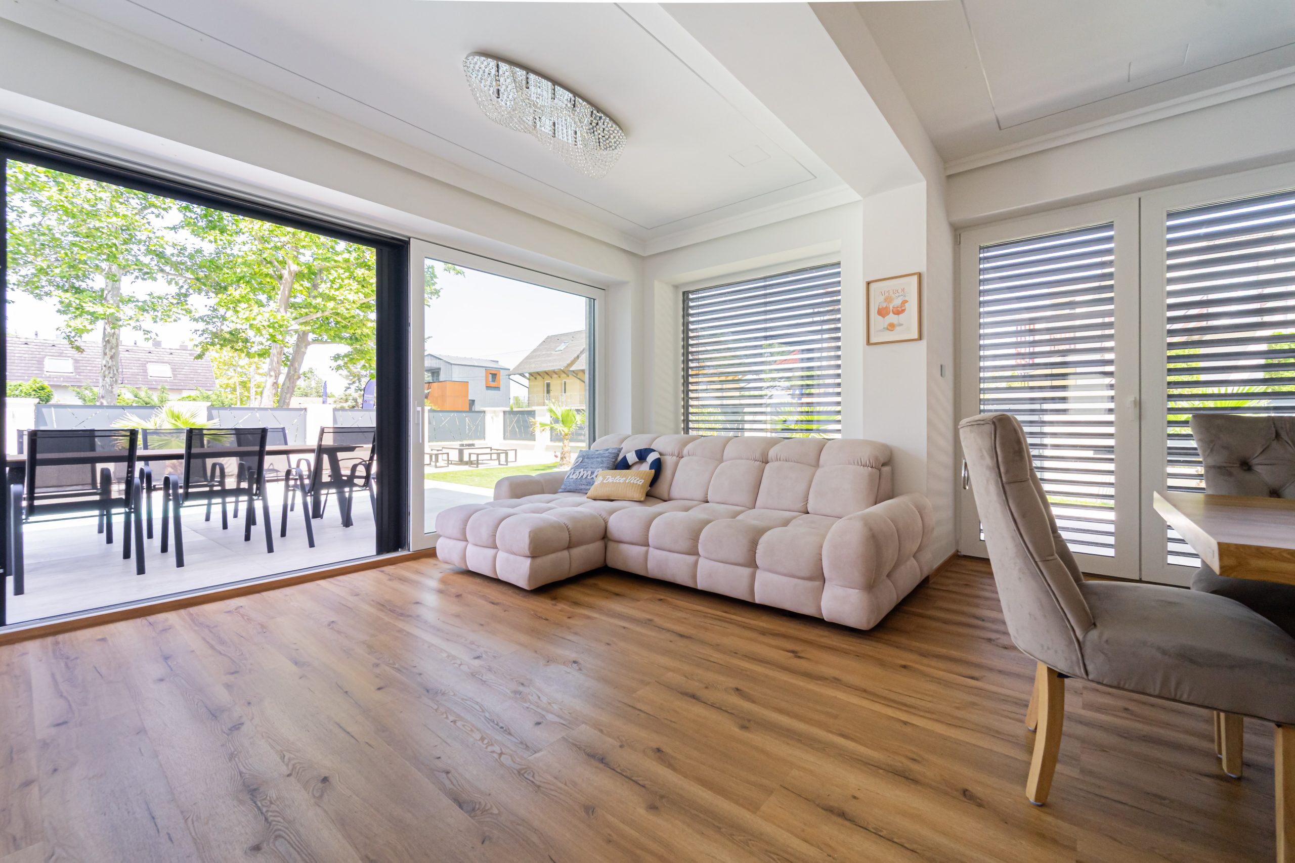 Amaizing! Every detail was carefully designed; modern, stylish, and spacious. A beautiful garden, waterfront location with excellent positioning, and a stunning panorama from the rooftop terrace. There is also a heated saltwater pool and a jacuzzi. The barbecu corner is professional. Perfect place for children. Everything was in place for a perfect vacation. We will definitely return.